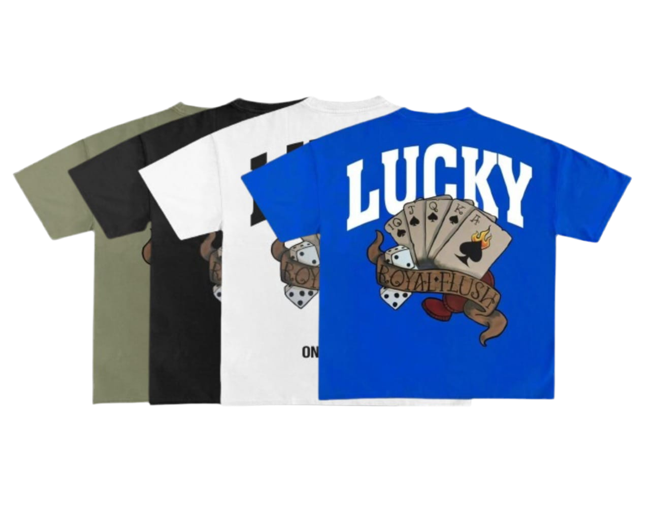 "Command the table—or the streets—with our Royal Flush collection. This premium heavyweight tee features a bold playing-card graphic, blending vintage casino elegance with modern streetwear edge. Crafted from 80% cotton / 20% polyester for structured comfort, it’s the perfect statement piece for those who bet on themselves."